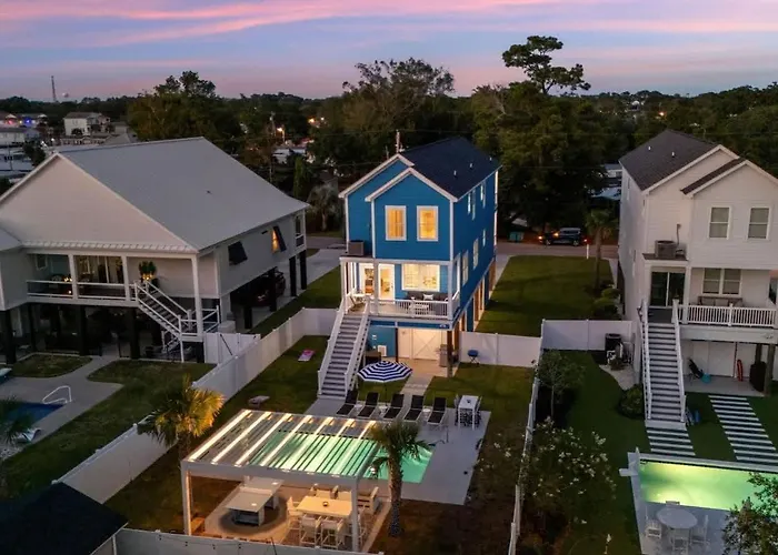 Luxurious 5Br Retreat With Pool The Blue Palm Villa Myrtle Beach offers proximity to nearby tourist spots, such as the energy Wild Water and Wheels, situated around 10 minutes' drive away.